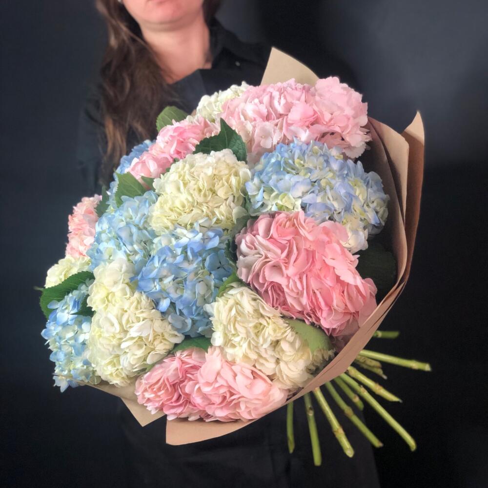 Большой букет из 15 гортензий