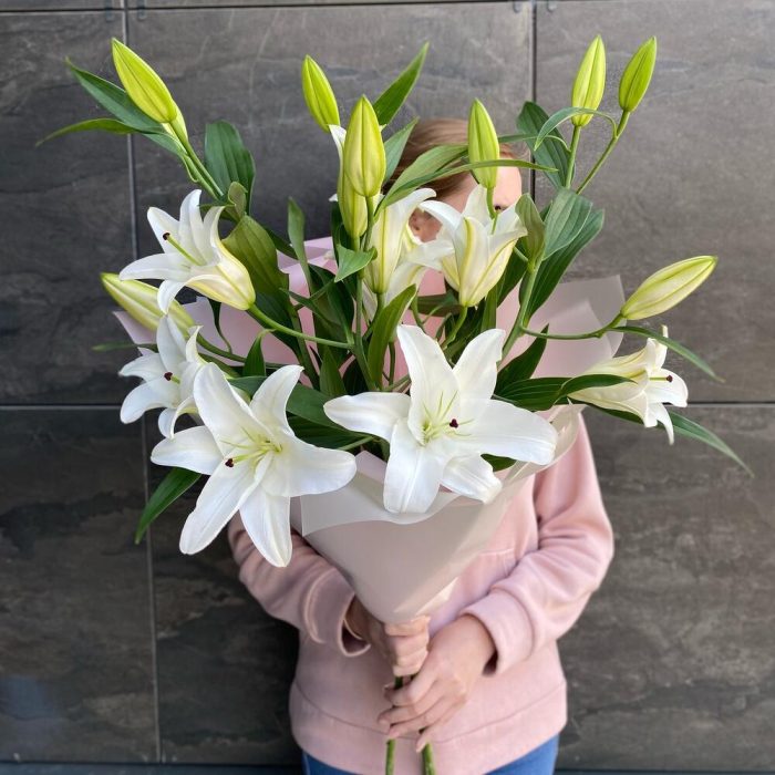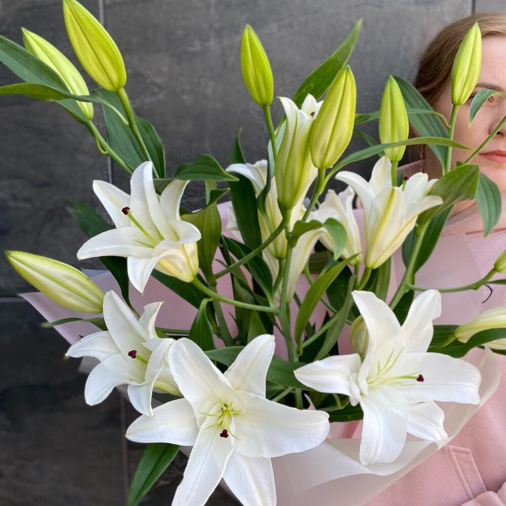 Монобукет с белыми лилиями, 3 шт