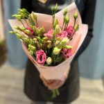 эустома розовая – 5 шт.Упаковка матовая пленка – 1 шт.Атласная лента – 1 шт.подкормка для срезанных цветов – 1 шт.памятка по уходу – 1 шт.