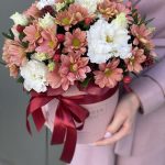 Коробка Марсала из эустомы и хризантемы