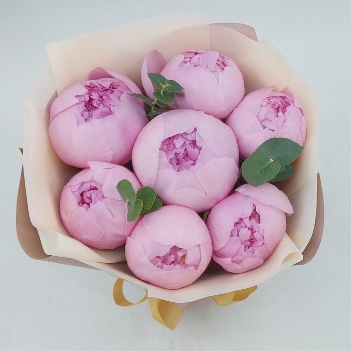 Эвкалипт – 1 шт.Упаковка дизайнерская – 1 шт.пион энджел чикс – 7 шт.