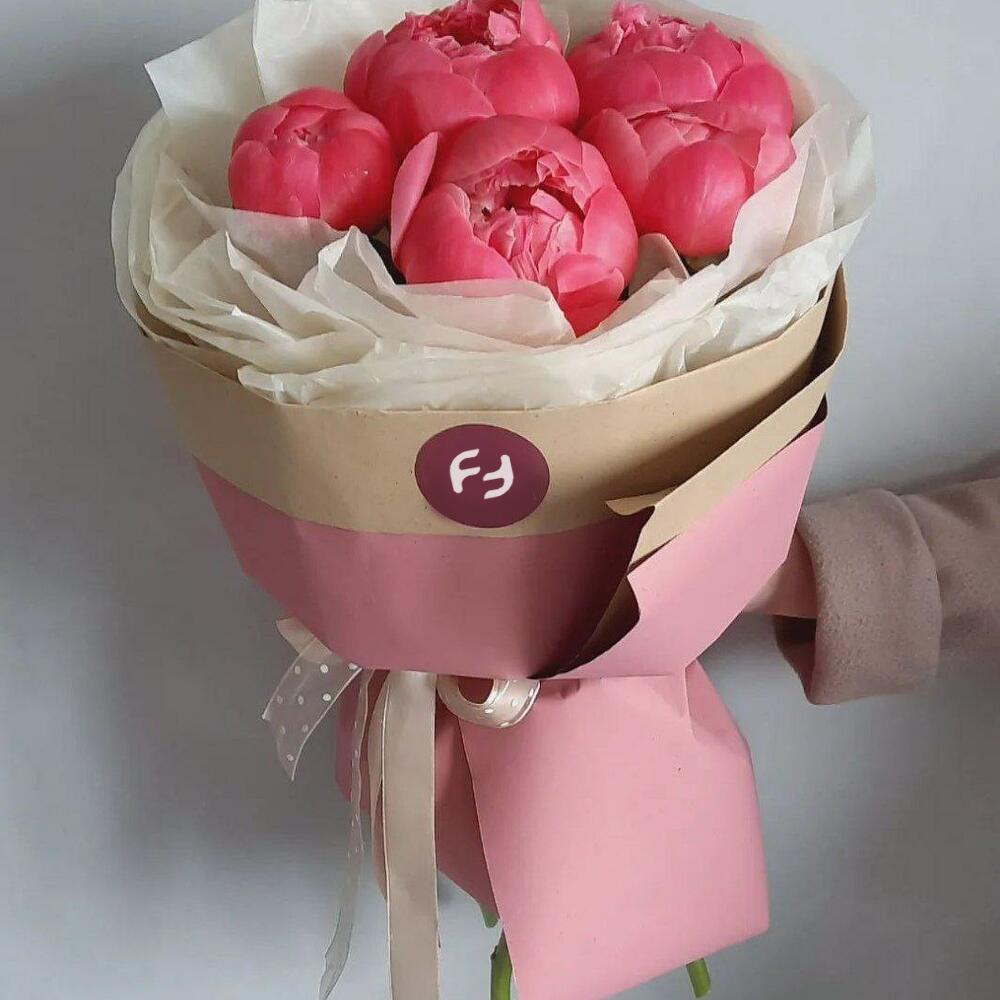 Букет из 5 коралловых пионов Premium