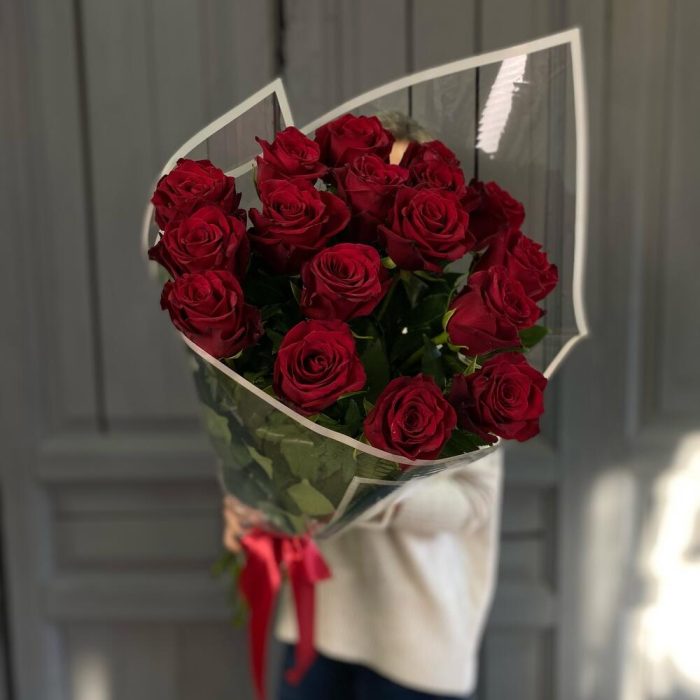 17 красных роз 70 см