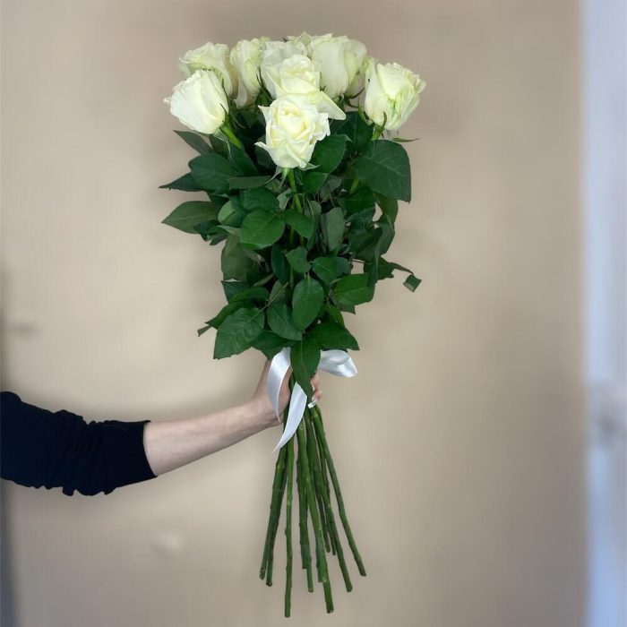 Букет белых высоких роз 15 штук