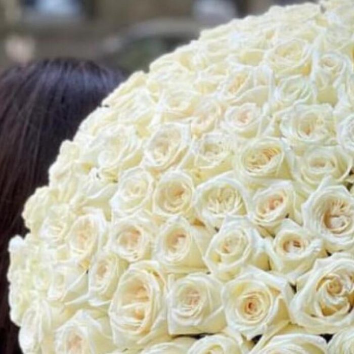 Роза белая – 101 шт.Лента атласная – 2 шт.Открыточка с вашими пожеланиями – 1 шт.хорошее настроение – 100 шт.инструкция по уходу за цветами – 1 шт.коробка переноска – 1 шт.Кризал – 1 шт.