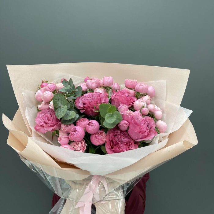Гвоздики, Кустовые розы, Лизиантусы, Пионовидные розы, Розы