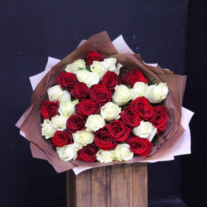 mono bouquet 36 из 35 роз микс сортов Mondial и Explorer