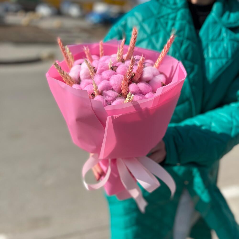 Хлопок – 11 шт.Лента атласная – 1 шт.Пшеница – 20 шт.Упаковка дизайнерская – 7 шт.