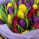Букет из 35 тюльпанов пионовидных микс в дизайнерской упаковке